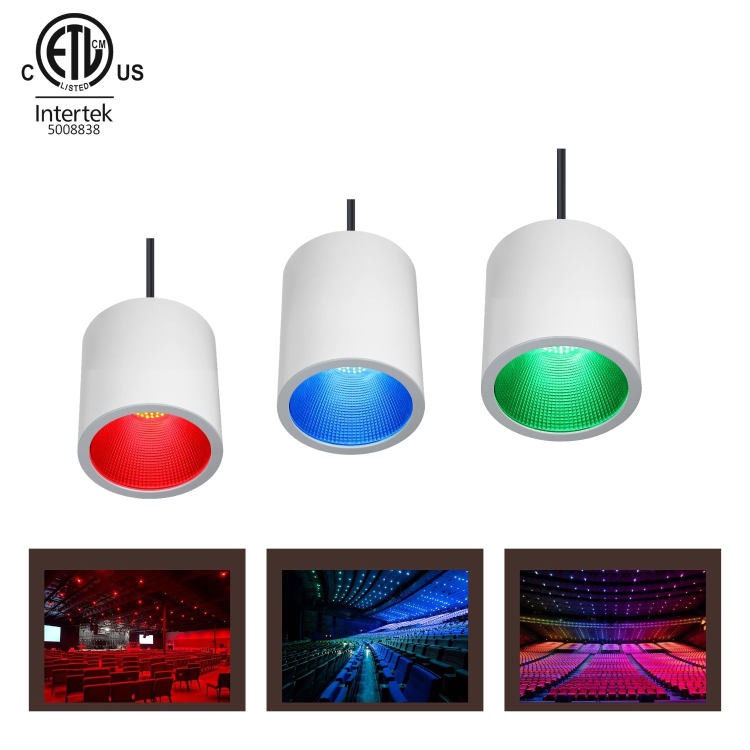 All of our RGBW pendant downlights are ETL Listed, ensuring full compliance with UL and CSA standards for use in the United States and Canada. This guarantees electrical safety, fire protection, and peace of mind for theater owners, designers, and contractors.