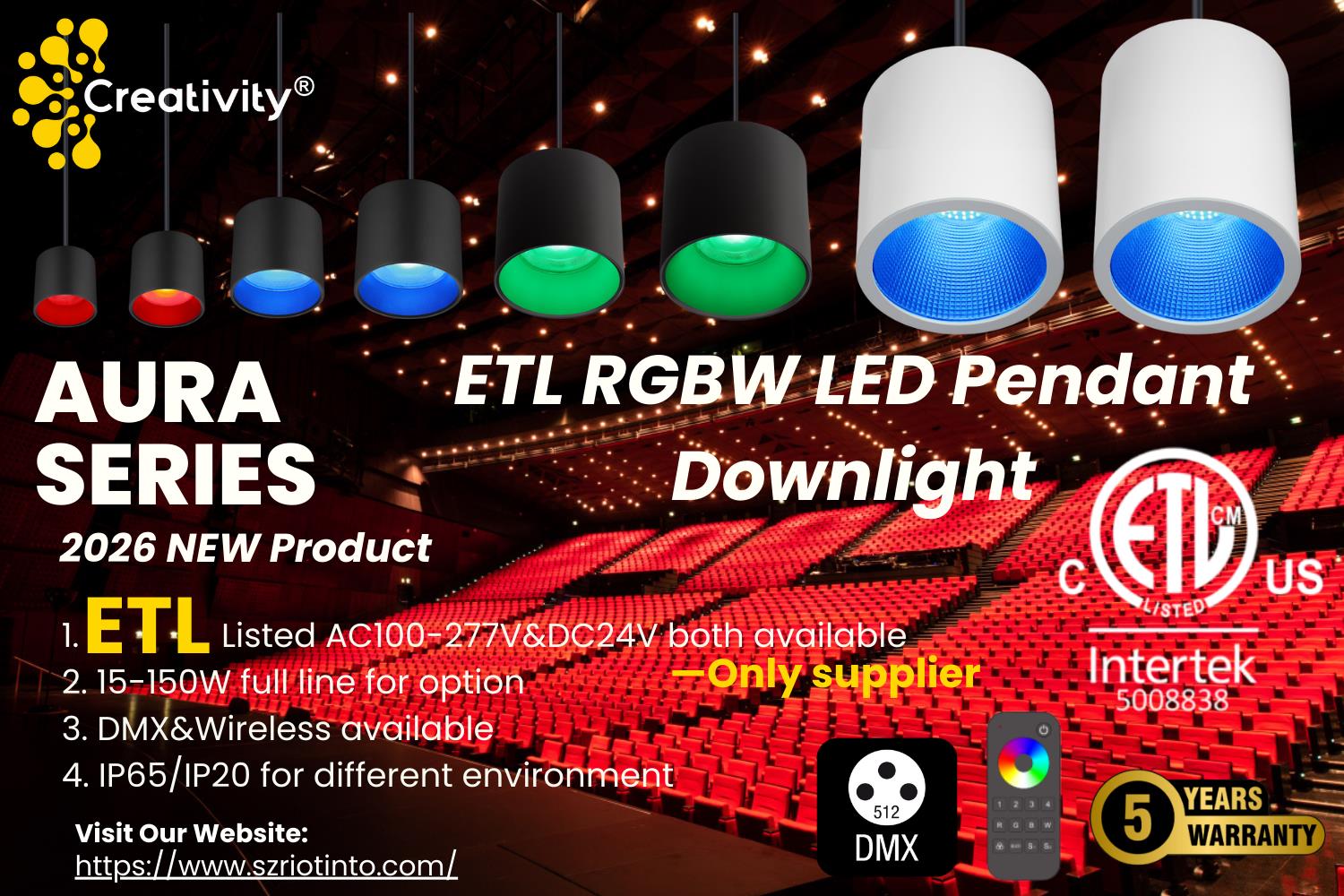 With ETL certification, true RGBW output, and theater-focused design, our RGBW Pendant LED Downlights provide a safe, flexible, and visually powerful lighting solution for modern performance spaces.