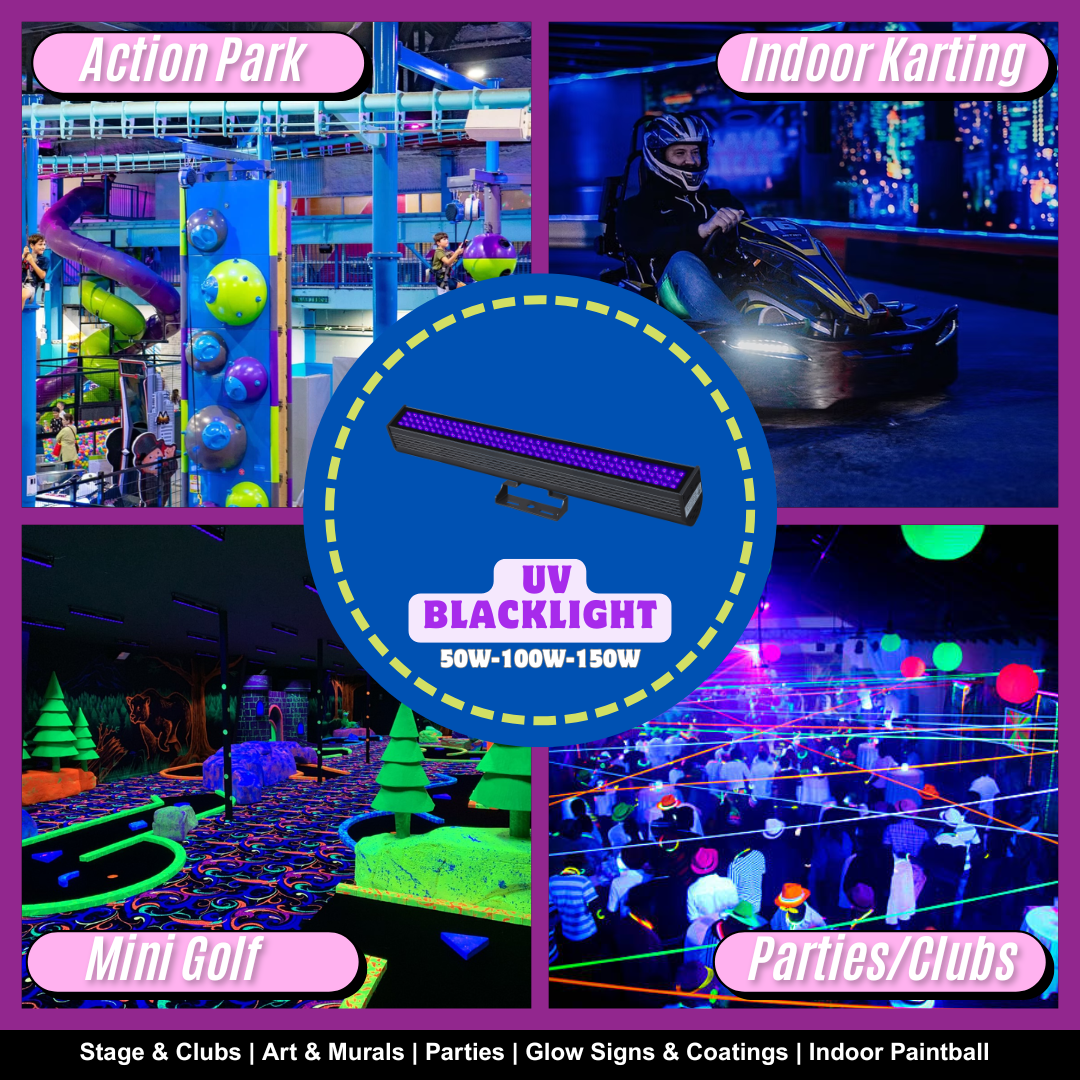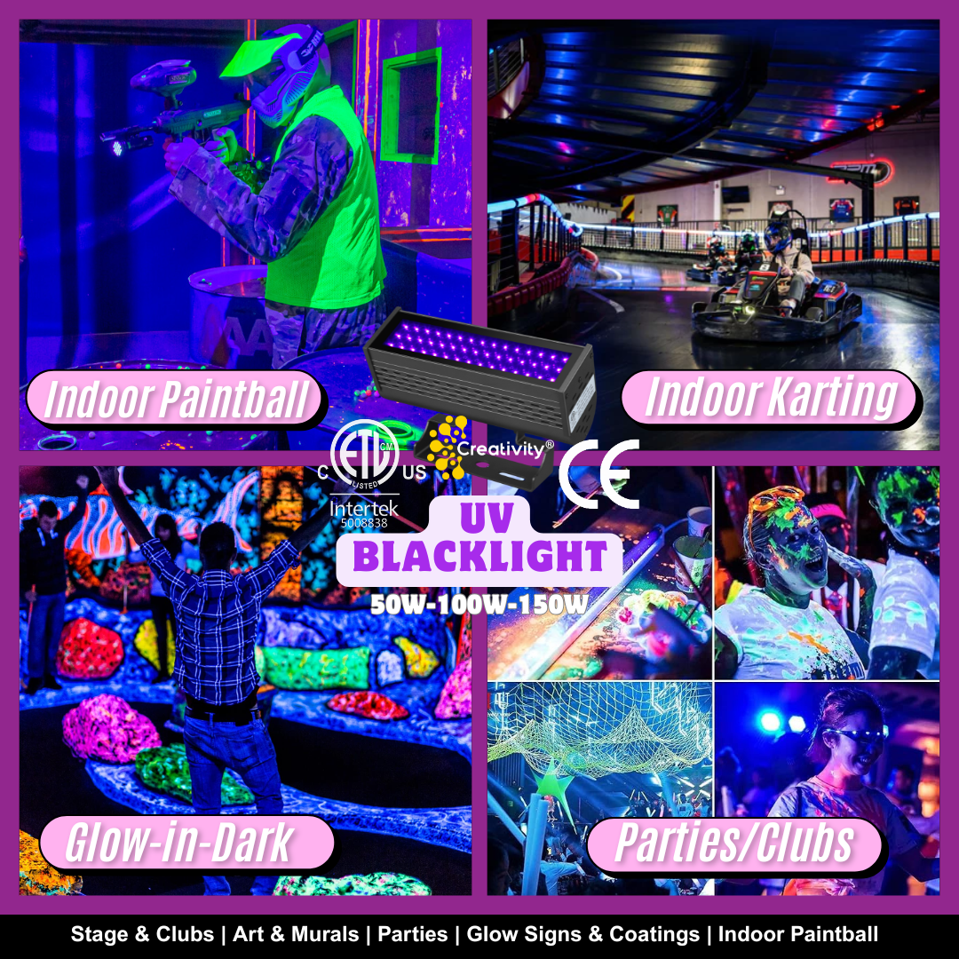 UV blacklights are a staple in concerts, nightclubs, glow parties, amusement parks, and theater productions, creating surreal atmospheres where costumes, decorations, and paints come alive with fluorescence.