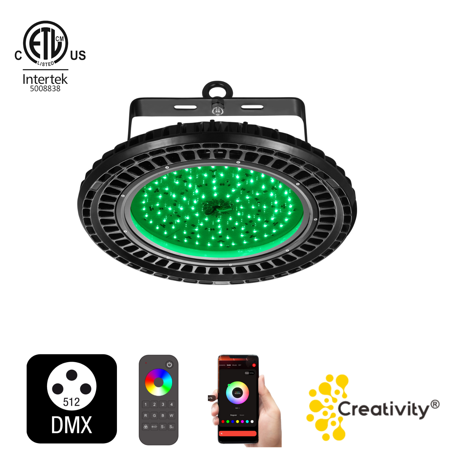 Our ETL Listed DMX RGBW UFO High Bay is designed to meet these demands, providing powerful white illumination for daily sports activities and dynamic RGBW lighting for special events.